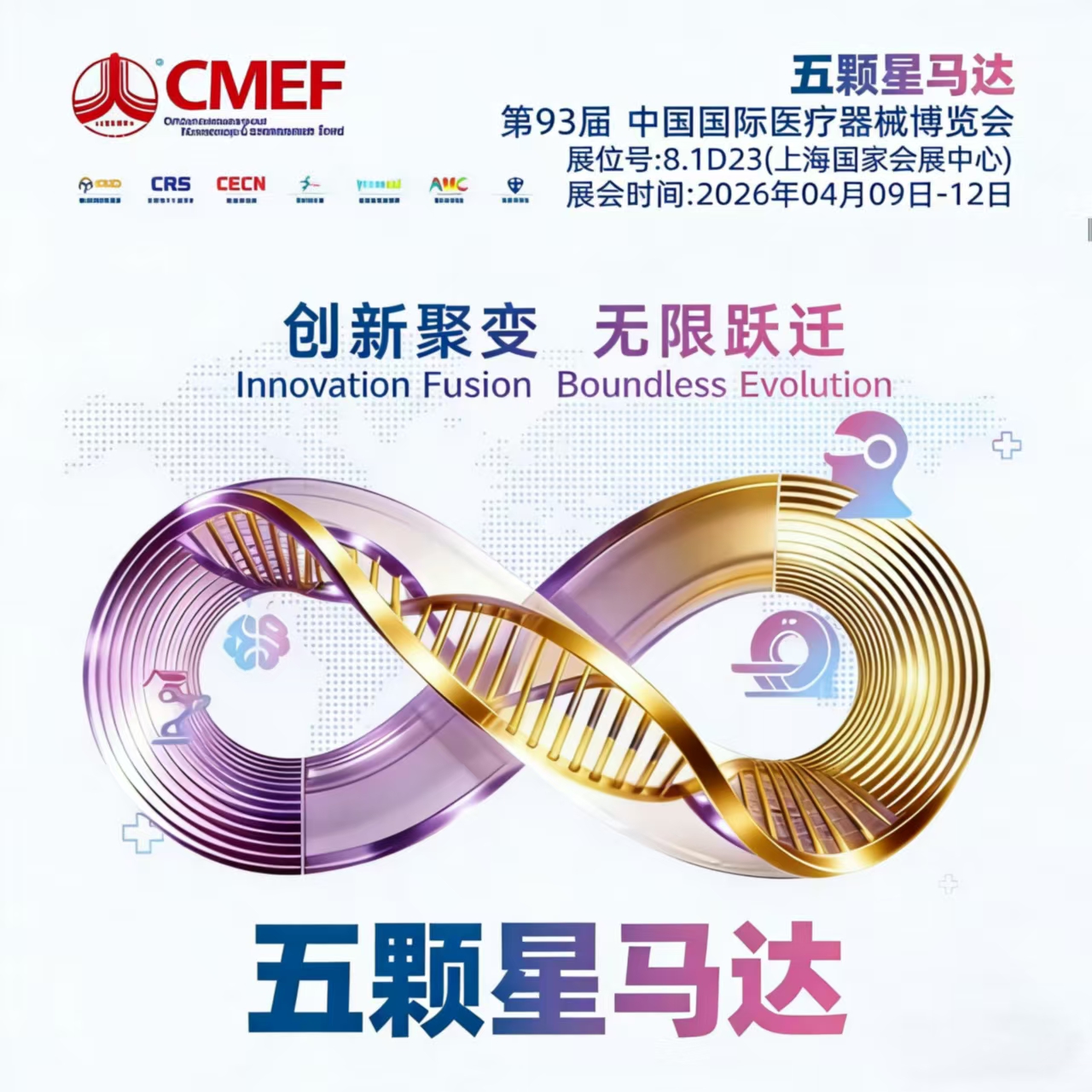 创新聚变,无限跃迁。五颗星马达始终以技术为锚,以需求为导向,持续为全球医疗设备厂商提供高可靠性的精密动力方案。未来,五颗星马达将继续加大研发投入,不断提升产品的性能和质量。我们将与更多的医疗设备厂商合作,共同开发新的产品和技术,为医疗行业的发展做出更大的贡献。在这个充满机遇和挑战的时代,五颗星马达将以创新为动力,以合作共赢为目标,与行业伙伴携手共进,共同开创医疗精密制造的美好未来。本次CMEF展会,我们期待与行业伙伴深度交流,共探医疗精密制造新未来!